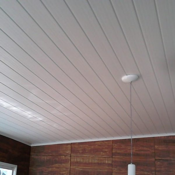 - Varanda ou área coberta externa: Forro de PVC. Suporta variação de temperatura e umidade do ambiente externo sem deteriorar.